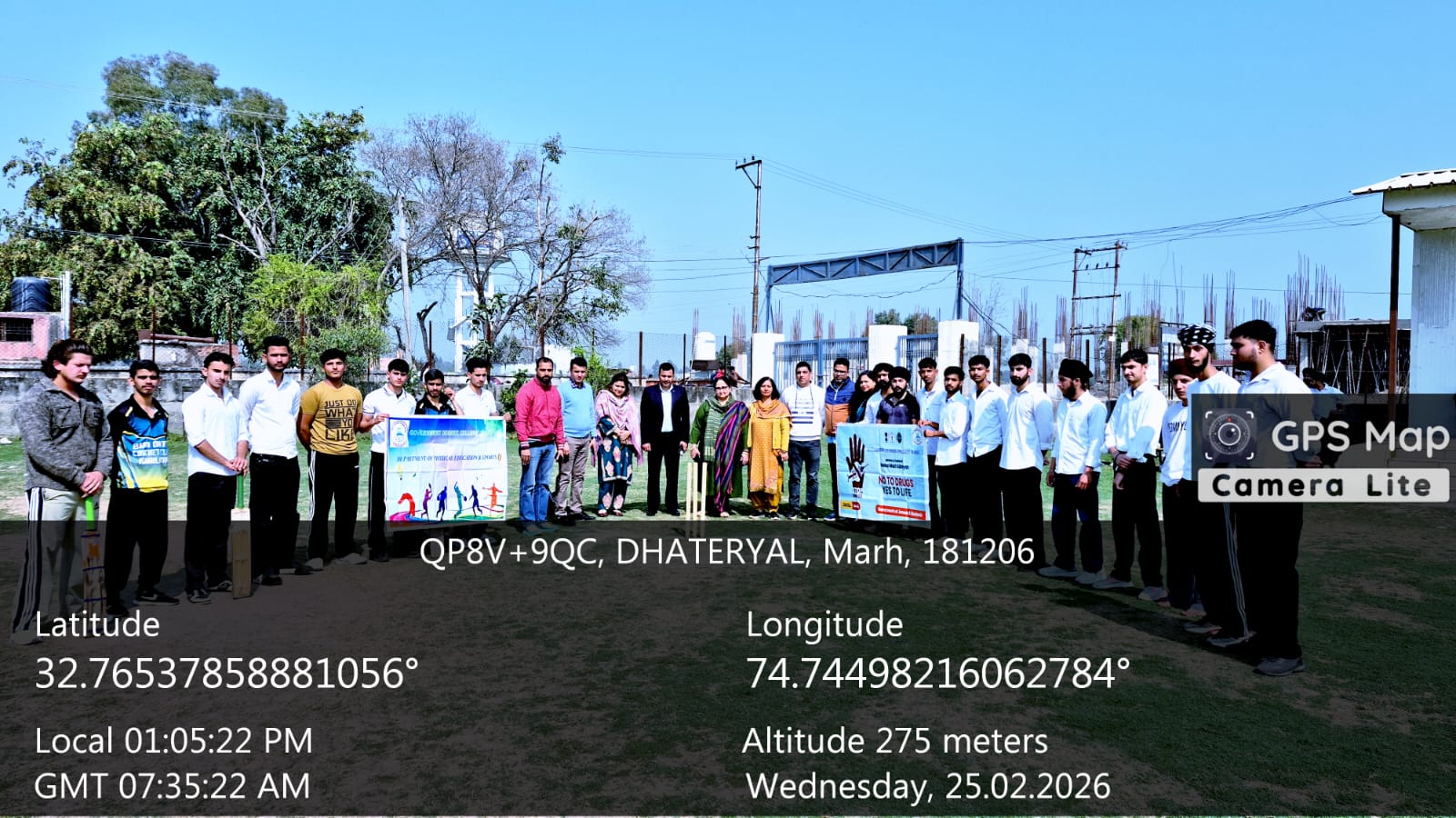 The Department of Physical Education and Sports, Government Degree College Marh organized an Intra-Mural Cricket Tournament from 25th to 28th February at the college playground. The tournament was organized by PTI Ravi Kumar. The main objective of the tournament was to promote sportsmanship, teamwork, physical fitness, and a spirit of healthy competition among students. The event witnessed enthusiastic participation from students and generated great excitement among participants and spectators. A total of five teams participated in the tournament. All matches were played with great enthusiasm and discipline, reflecting the sporting spirit of the students. After a series of competitive matches, Team Jhelum-6th Semester emerged as the winner of the tournament by defeating Team Tawi 2nd Semester in the final match. The winning team displayed excellent coordination, skill, and determination throughout the tournament. The tournament concluded successfully and provided a valuable platform for students to showcase their sporting talent while strengthening friendship and team spirit among the participants. The event was organized under the supervision of Prof. Ramneek Kaur, Principal of the College.