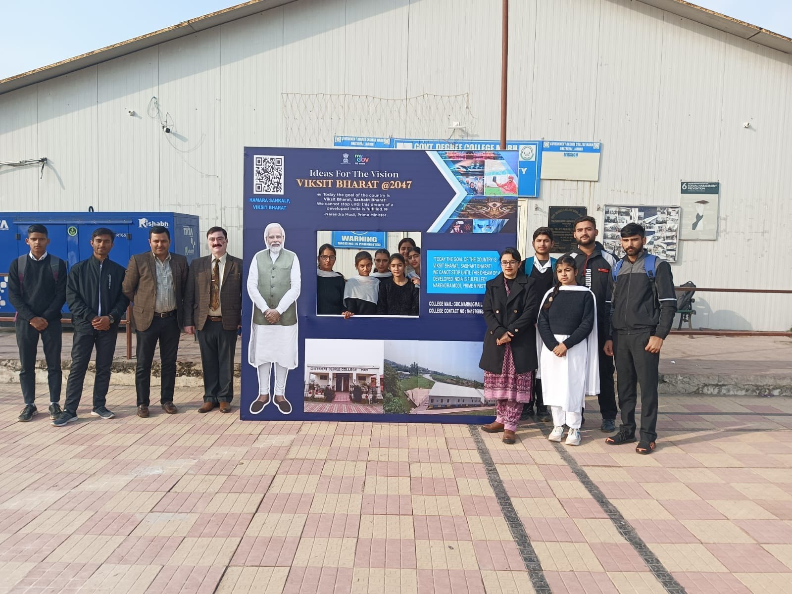 As per the directions of Higher Education Department, a selfie booth point was purchased in the college campus on 26/12/2023 with slogan “I have shared my idea for ViksitBharat@2047. Have You? A large number of students participated in the event. The Selfie booth point was highly appreciated the students. The initiative aims to promote the vision of a developed India by year 2047. The activities were organized by Mr. Imitaz Shahid (HOD Zoology), Ms. Anjana chib (HOD EVS), Ravi Kumar (PTI) and Dr. Shakun Sharma (HOD Sociology).