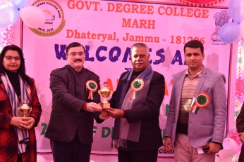 Government Degree College Marh, in collaboration with BDO Office, Department of Rural Development & Panchayati Raj and Government Middle School, Dhateryal, organized reception of Viksit Bharat Sankalap Yatra on 13/12/2023 The participants received the Information, Education and Communication (IEC) Van, which started its journey from Jharkhand, travelling across different parts of the country and reaching Govt. Degree College Marh. The campaign showcased a significant commitment to rural development and community empowerment. The collaborative effort aimed to promote the Prime Minister’s vision to actively involve the youth of the country in formulation of national plans, priorities and goals of the country. Principal of the College Prof. Dr. Rakesh Kumar Koul, welcomed all the dignitaries, local public and officials controlling stalls put up by different government departments and expressed gratitude for this collaborative effort.