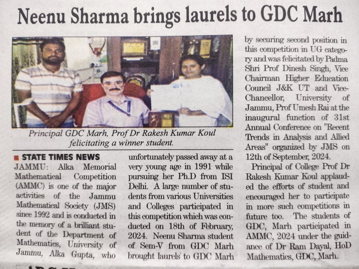 National Mathematics Day & Dogri Manyata Diwas observed at GDC Marh