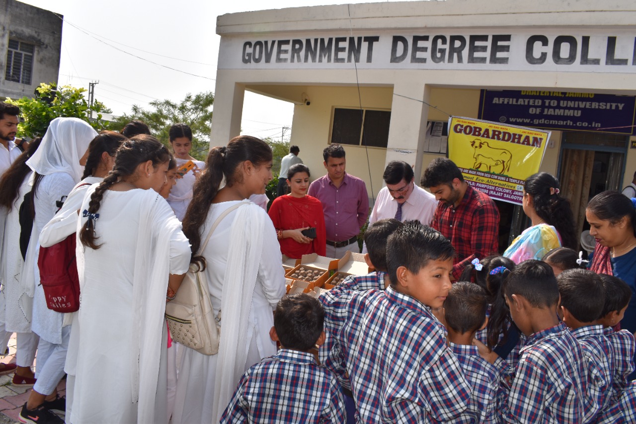To create awareness on health, sanitation and nutrition, 25 students of Red Ribbon club visited Aganwadi centre, Panchayat Dhateryal, Marh. Principal of the college Dr. Rakesh Kumar Koul also visited the center and discussed with the students that Anganwadi programmes are a part of Integrated Child Development Schemes (ICDS)/ Poshan Abhiyan and provide supplementary nutrition, basic healthcare and pre-school education and this programme also extends to pregnant and lactating mothers. Various parameters such as weekly meal schedule for kids of various age groups, adolescent girls, nursing mother, diet chart of pregnant ladies, supplements such as calcium, iron tablets, education standard were discussed by the students with the aganwadi sangini and sahayaka. College students got first hand experience of interaction with the kids. Prof. Imitaz Shahid (HOD Zoology), Ms. Madhavi Parasher (HOD Botany), Ms Anjana Chib (HOD EVS), Dr. Sheetal Sharma (HOD Dogri) also accompanied the students during the visit.